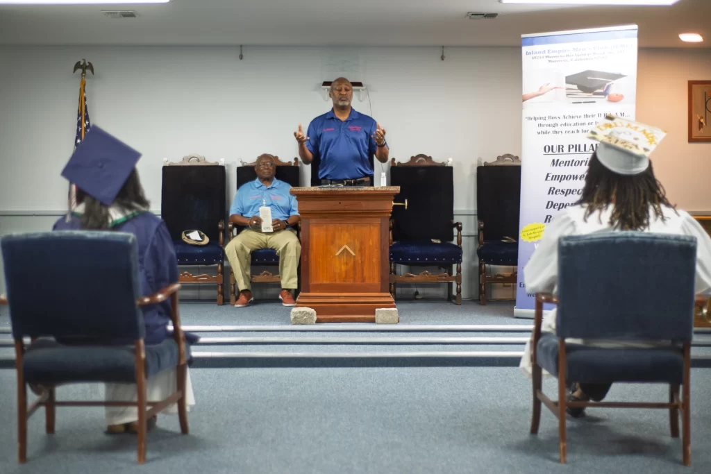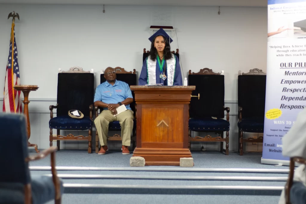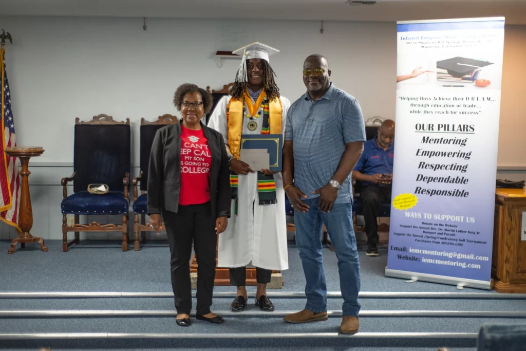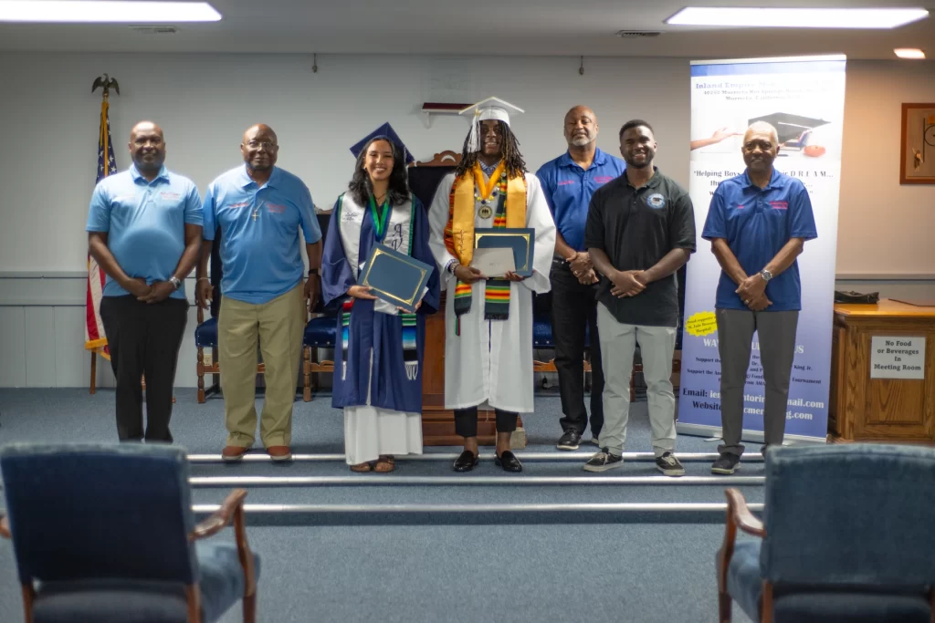The Inland Empire Mens Club proudly presented monetary scholarships to two exceptional local high school graduates. Leilani Perez, dressed in the blue gown of Chaparral High School in Temecula, is set to attend the University of California, Santa Cruz (UCSC). Nehmiah Ricks, wearing the white gown of Vista Murrieta High School, will be attending Mount San Jacinto Community College (MSJC).