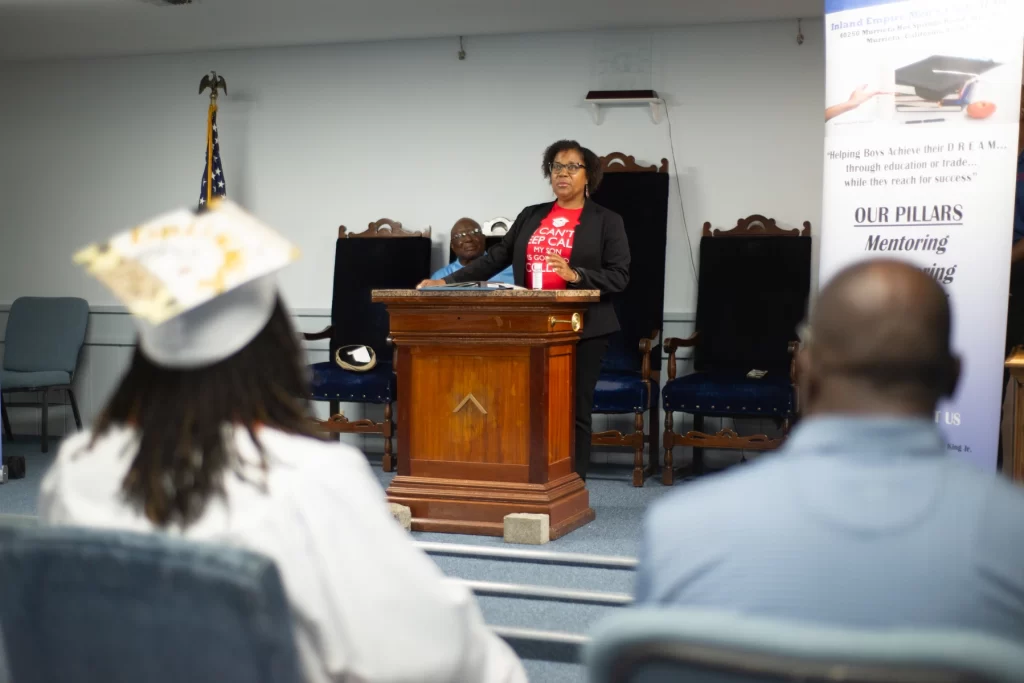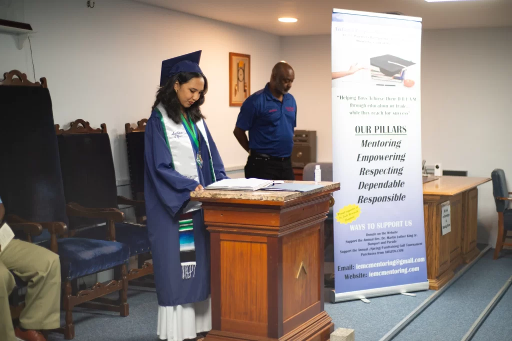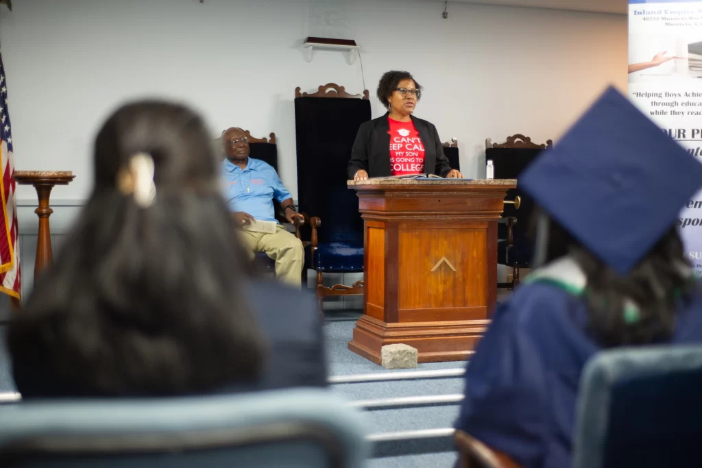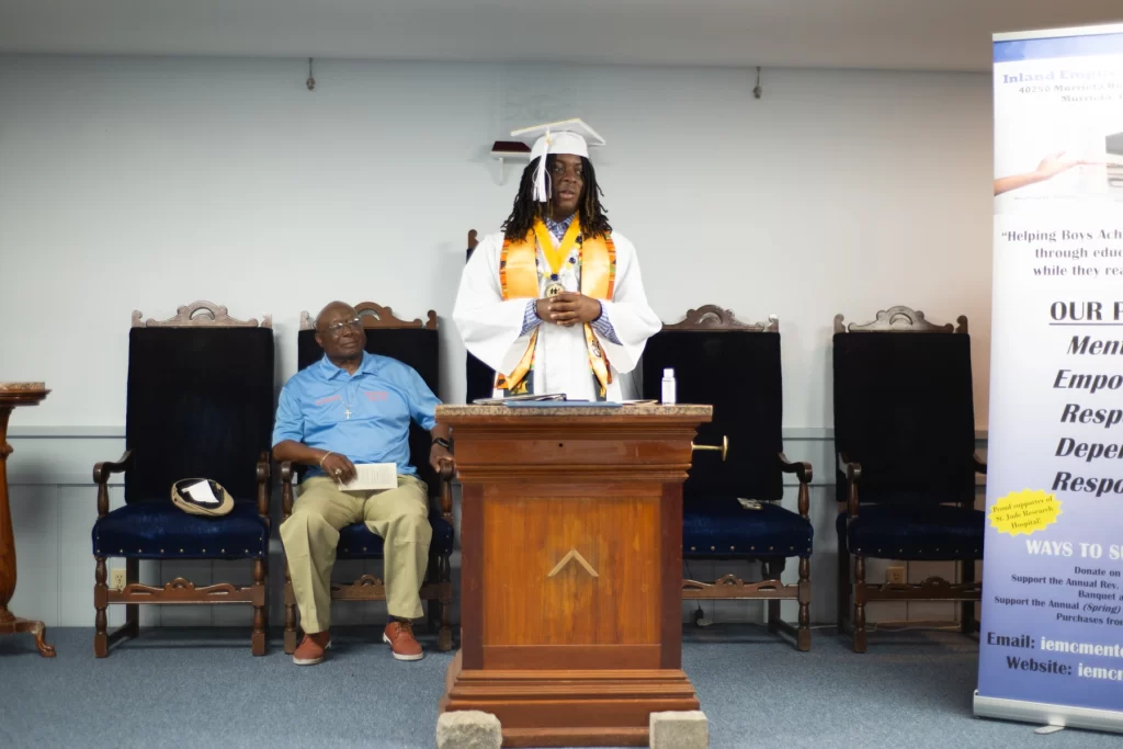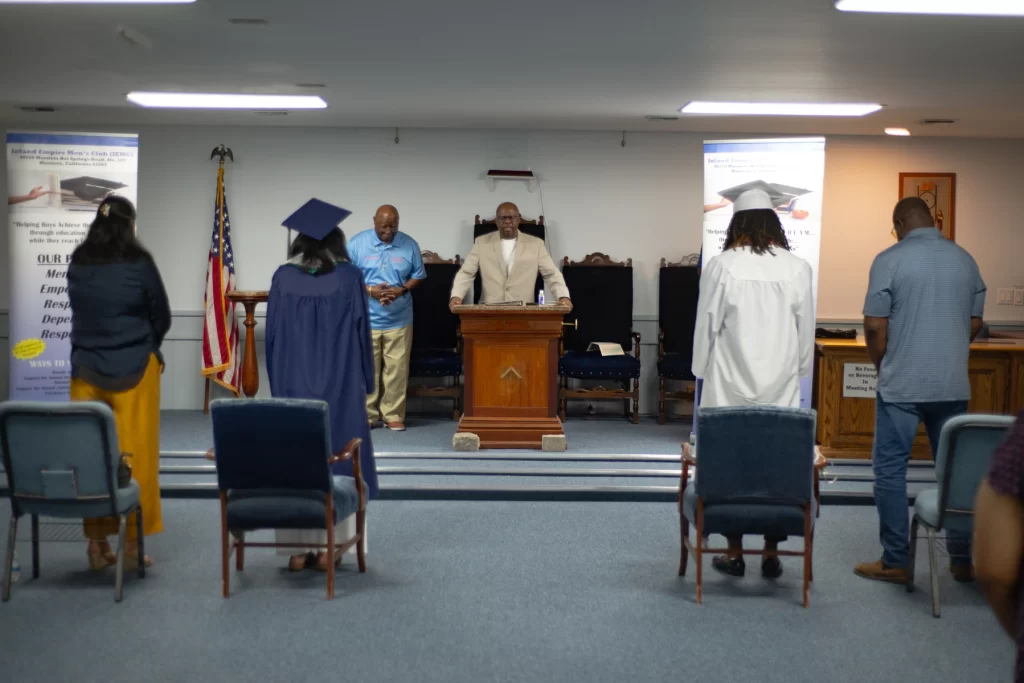 The Inland Empire Mens Club proudly presented monetary scholarships to two exceptional local high school graduates. Leilani Perez, dressed in the blue gown of Chaparral High School in Temecula, is set to attend the University of California, Santa Cruz (UCSC). Nehmiah Ricks, wearing the white gown of Vista Murrieta High School, will be attending Mount San Jacinto Community College (MSJC).